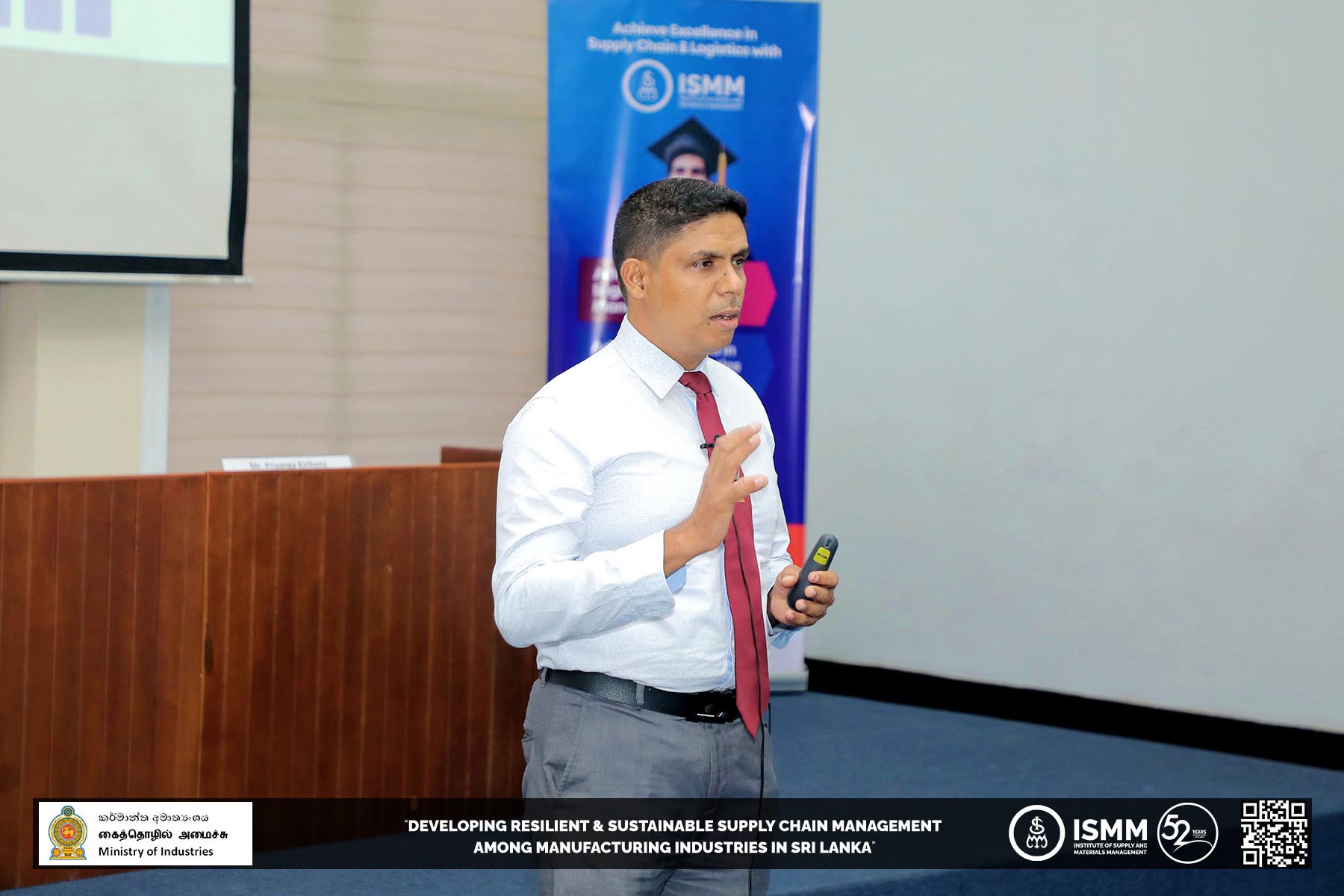 The Institute of Supply and Materials Management (ISMM), in collaboration with the Ministry of Industries, has successfully concluded the "𝐃𝐞𝐯𝐞𝐥𝐨𝐩𝐢𝐧𝐠 𝐑𝐞𝐬𝐢𝐥𝐢𝐞𝐧𝐭 𝐚𝐧𝐝 𝐒𝐮𝐬𝐭𝐚𝐢𝐧𝐚𝐛𝐥𝐞 𝐒𝐮𝐩𝐩𝐥𝐲 𝐂𝐡𝐚𝐢𝐧 𝐌𝐚𝐧𝐚𝐠𝐞𝐦𝐞𝐧𝐭 𝐚𝐦𝐨𝐧𝐠 𝐌𝐚𝐧𝐮𝐟𝐚𝐜𝐭𝐮𝐫𝐢𝐧𝐠 𝐈𝐧𝐝𝐮𝐬𝐭𝐫𝐢𝐞𝐬 𝐢𝐧 𝐒𝐫𝐢 𝐋𝐚𝐧𝐤𝐚" project. This remarkable six-month initiative has laid the foundation for a transformative journey in improving Supply Chain practices within the country's manufacturing sector.